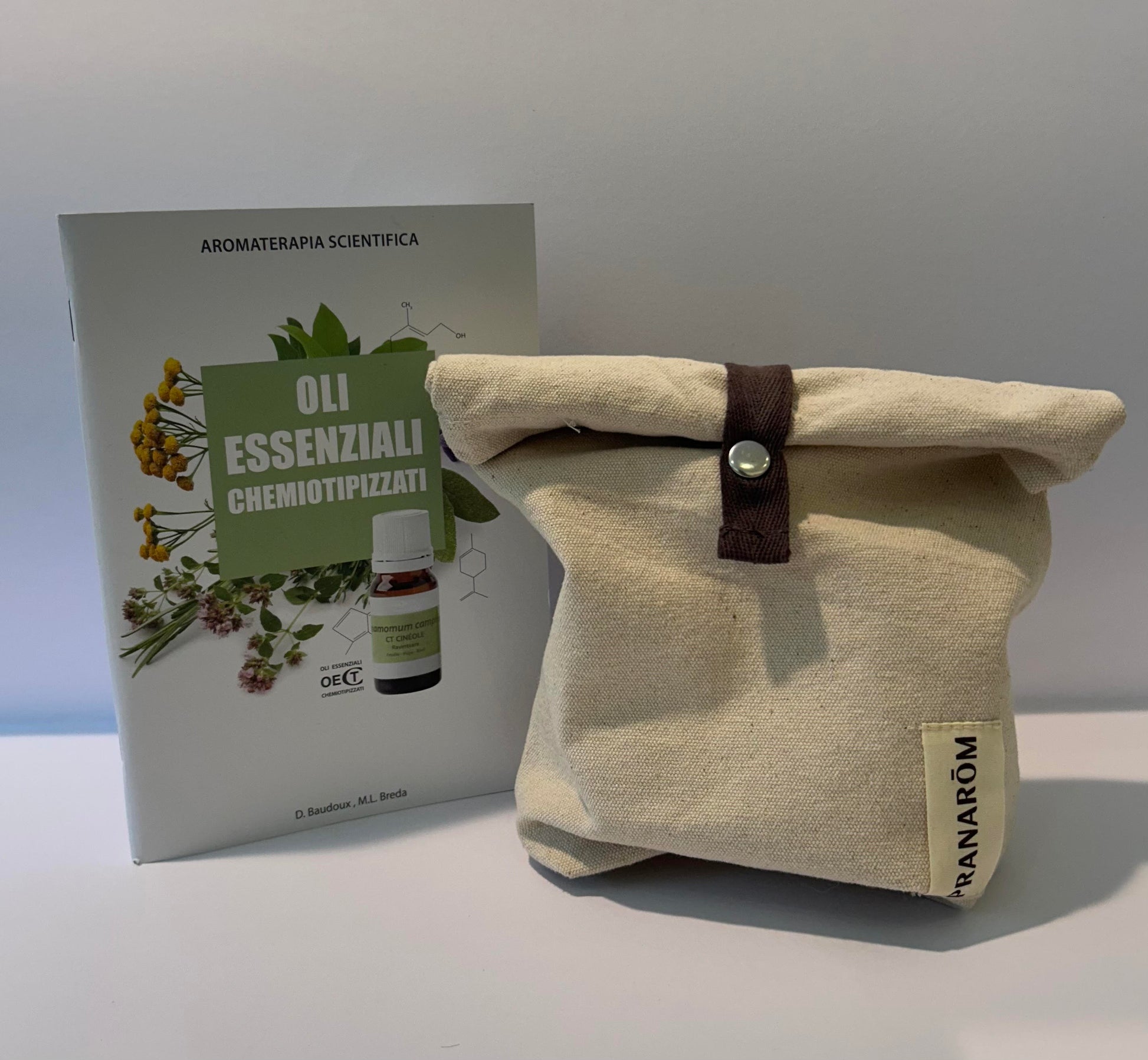 Libretto completo sull'aromaterapia in cui vengono spiegati in modo chiaro ed esaustivo gli utilizzi e le indicazioni di tutti gli oli essenziali di pranarom, abbinato ad una pochette elegante in cotone.